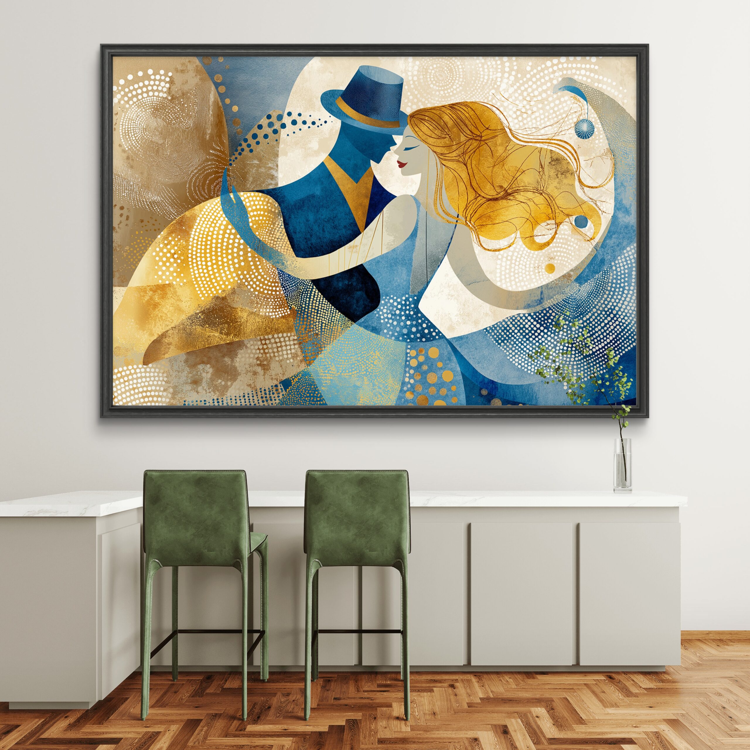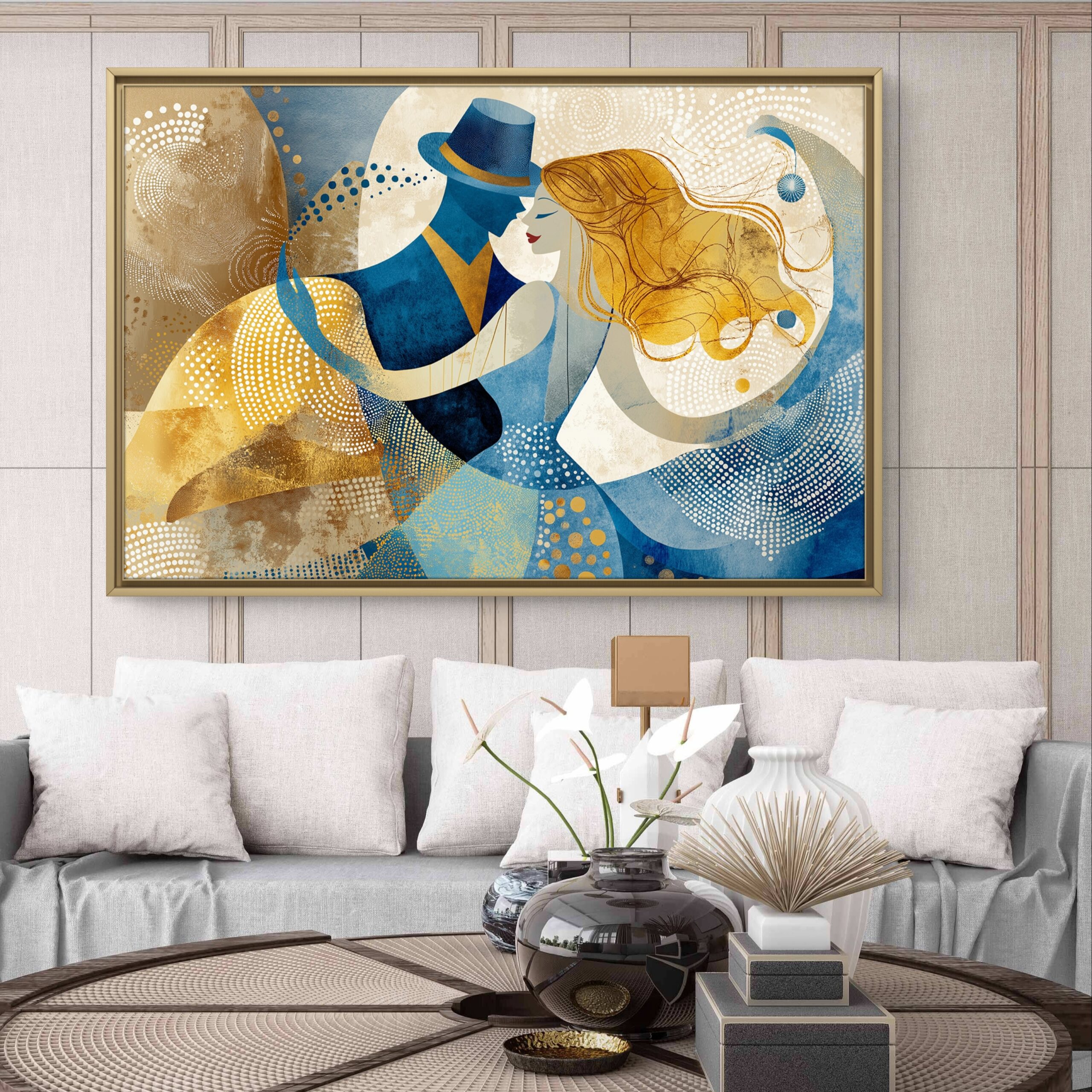 Golden Harmony – Modern Abstract Couple Canvas Wall Painting