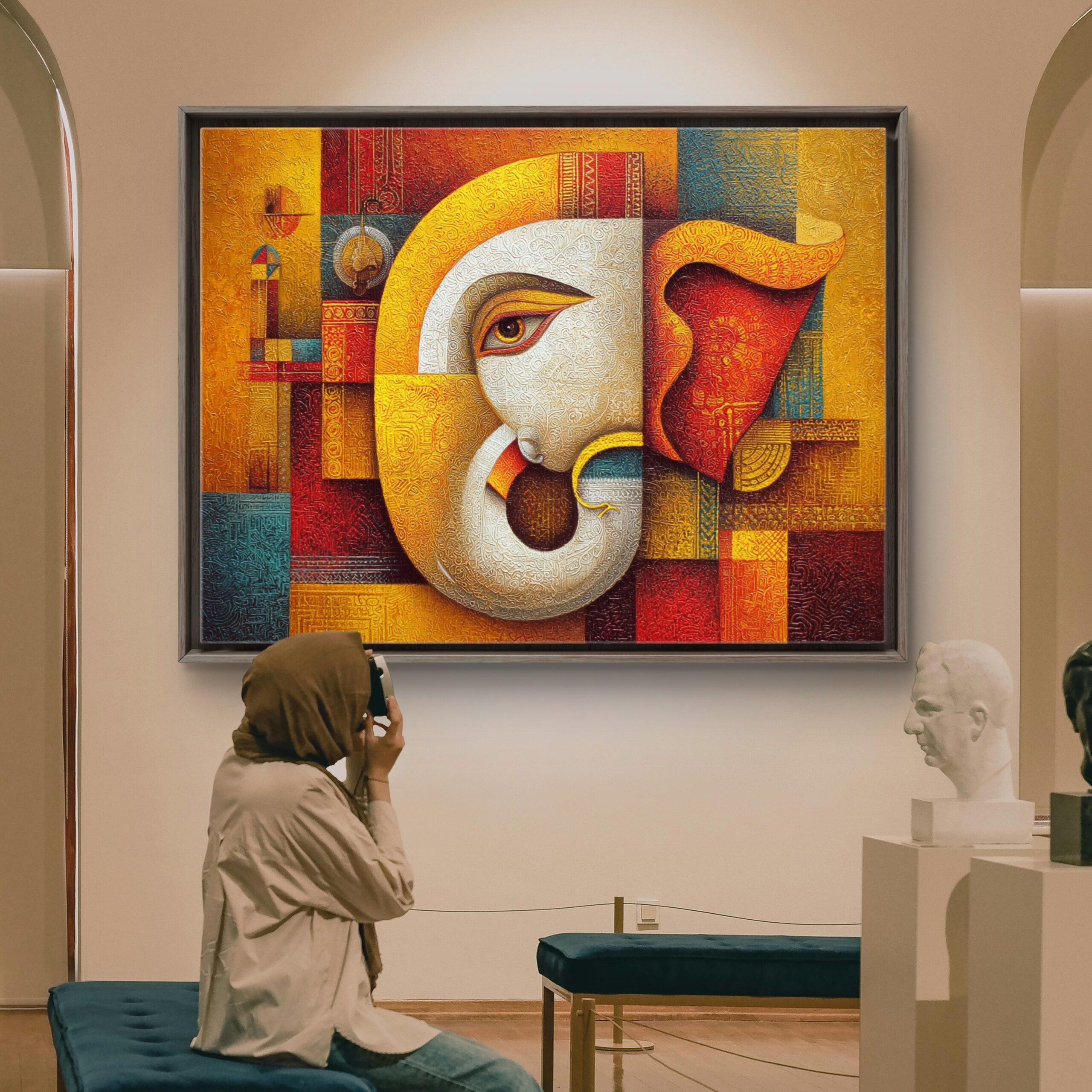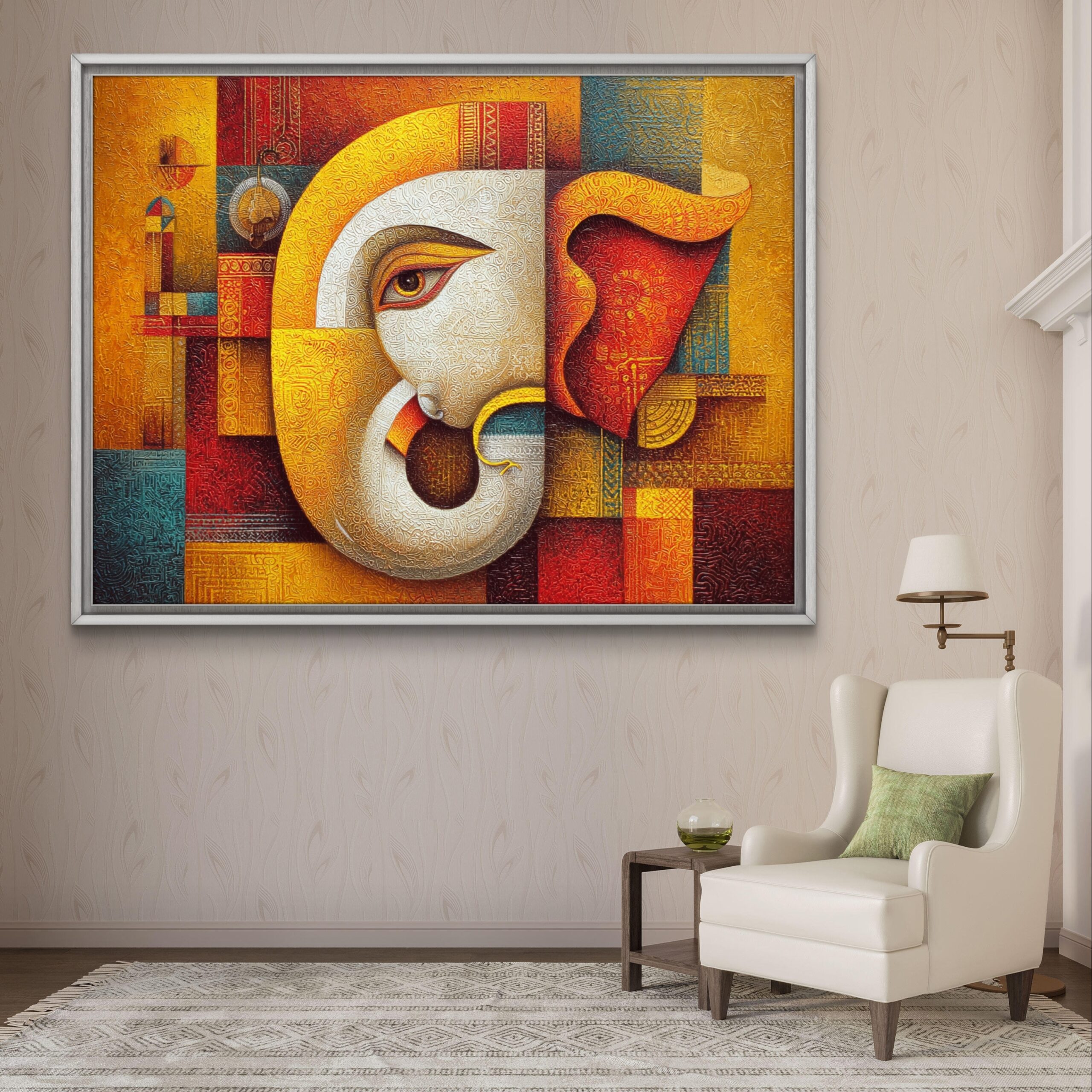 Modern Abstract Ganesha Canvas Painting – Spiritual Wall Art for Home